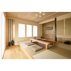 日式木構住宅所用的木材均經乾燥及防蟻等處理,本身具防震、隔熱、隔音等功能,加上木材屬天然材質,較之水泥更為養生的功效,因此對於人體健康甚有助益。